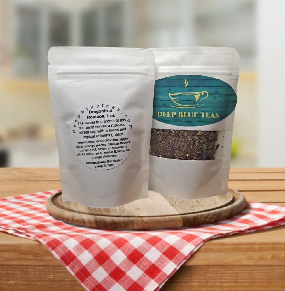 This blueberry cinnamon herbal rooibos tea blend has a sweet blueberry, cake taste with a little spice. It has a delicious dessert aroma without any of the bad stuff. This sugar-free and caffeine-free dessert can be enjoyed anytime.